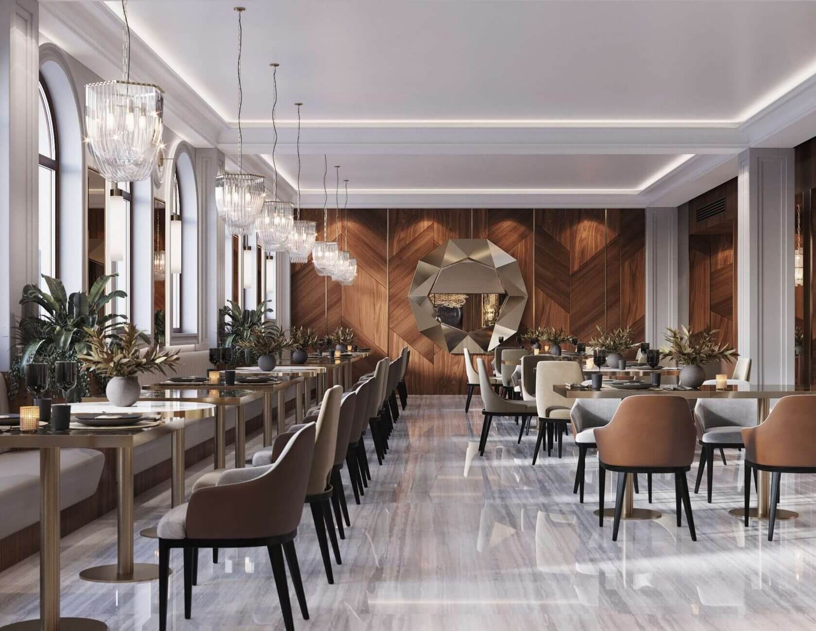 Фасады комплекса выполнены в стиле Haussmann — той самой парижской архитектуры XIX века, которая до сих пор формирует облик Парижа и во многом объясняет его притягательность для всего мира. Этот стиль вне времени, поэтому он так органично считывается и сегодня.